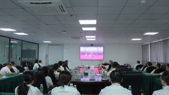 2025年9月3日上午,丽彩集团党委组织公司领导班子成员、各党支部书记、中层管理人员及业务技术骨干,在第二会议室集中收看纪念中国人民抗日战争暨世界反法西斯战争胜利80周年大会实况直播。各党支部与职能部门同步组织党员干部职工通过电视、网络平台自行观看,共同见证这一庄严历史时刻,深切缅怀为民族独立与人类和平献身的革命先烈,传承和弘扬伟大抗战精神。庄严会场,同心感悟历史在庄严肃穆的会场内,全体参会人员着装整齐,身着白色上衣、深色下装,党员佩戴党徽,精神饱满,以高度的政治自觉和严谨的态度参与活动。当雄壮的国歌奏