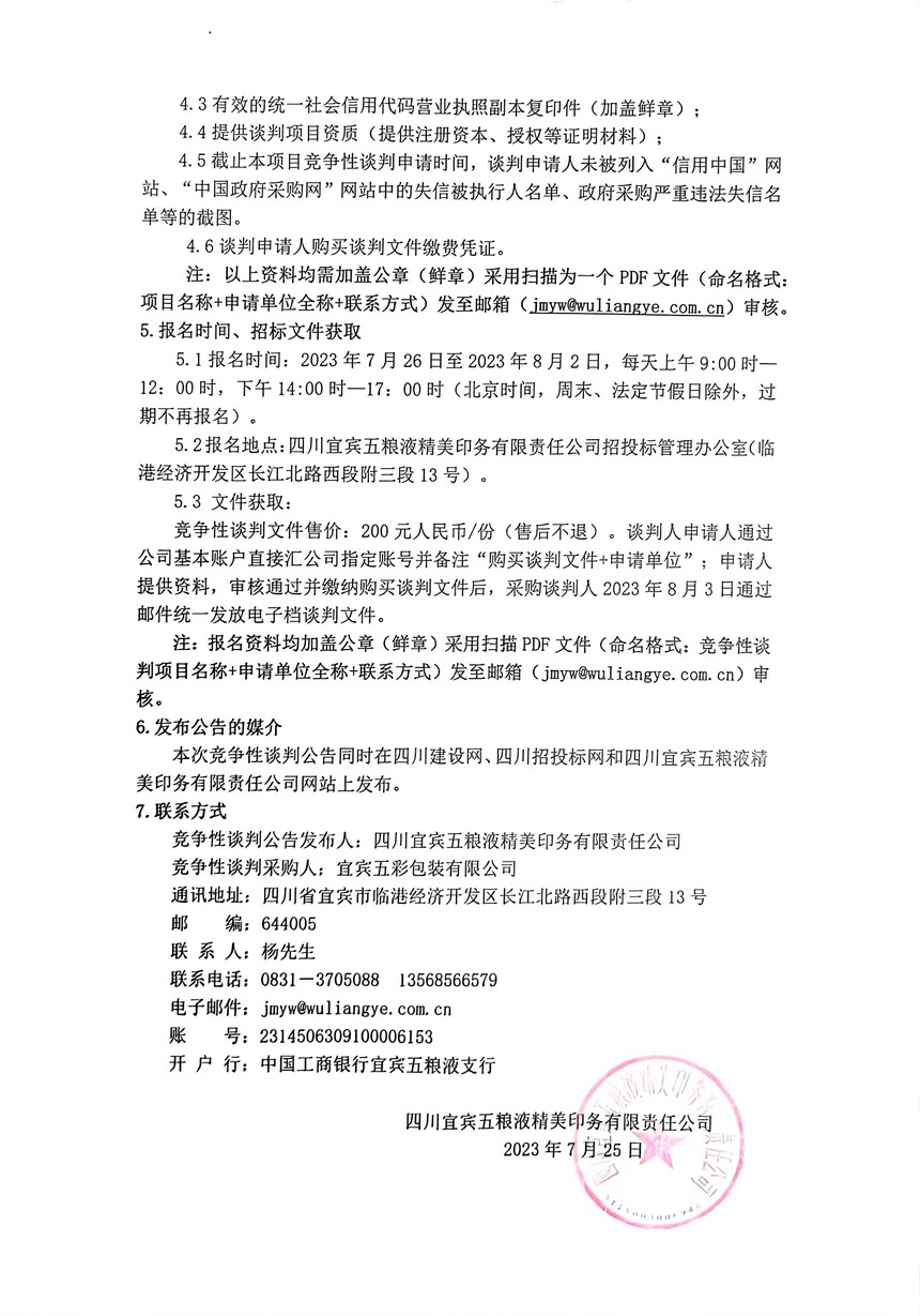 "快印二期"配套设备采购项目竞争性谈判第二次公告