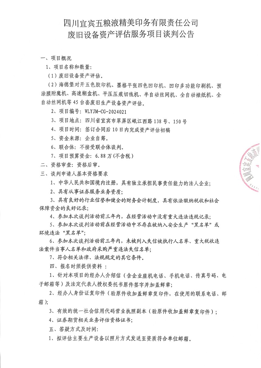 废旧设备资产评估服务项目谈判公告