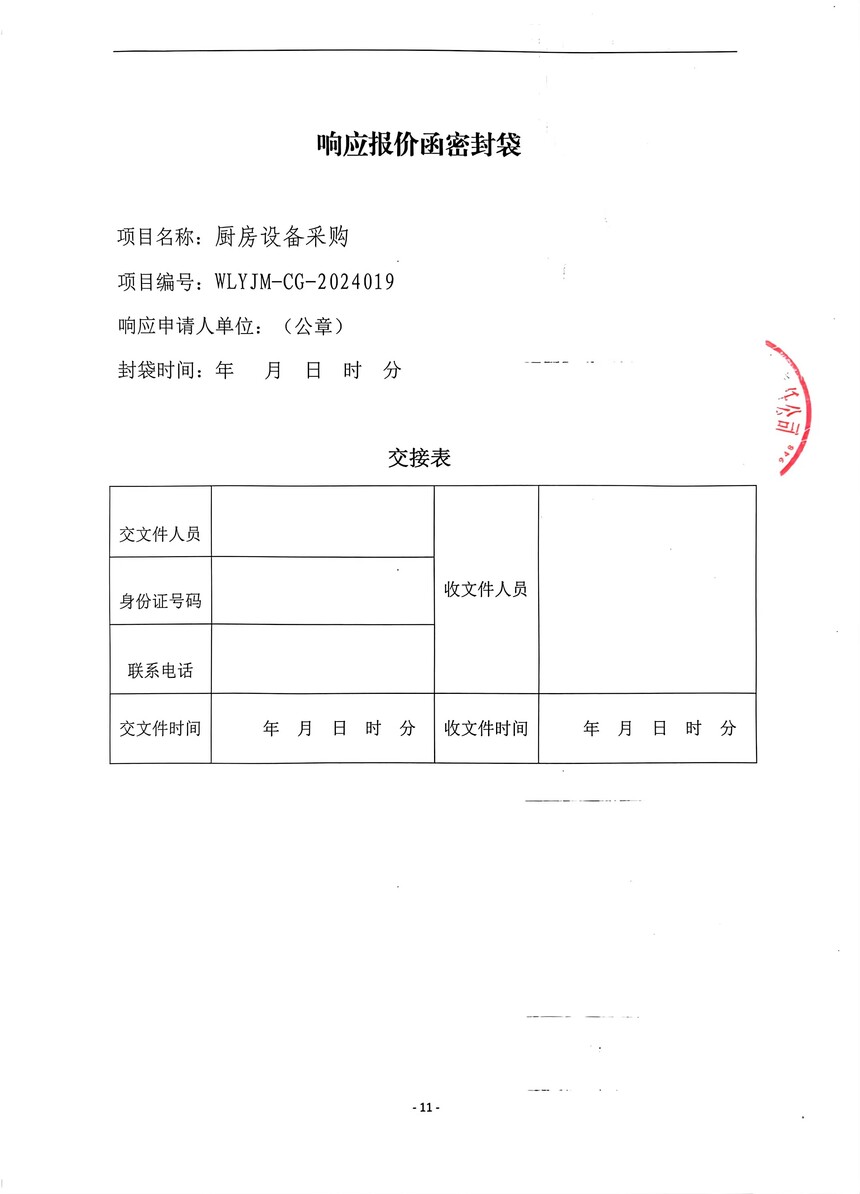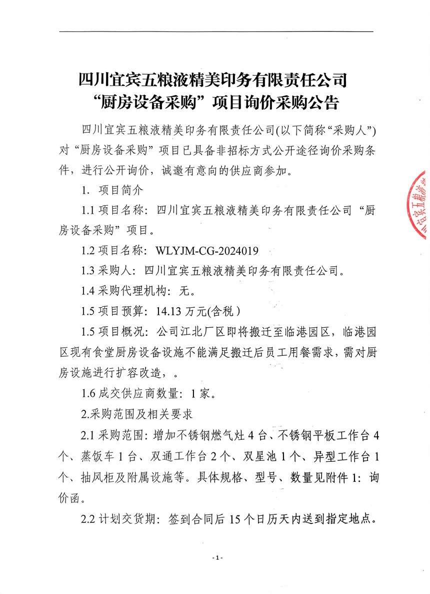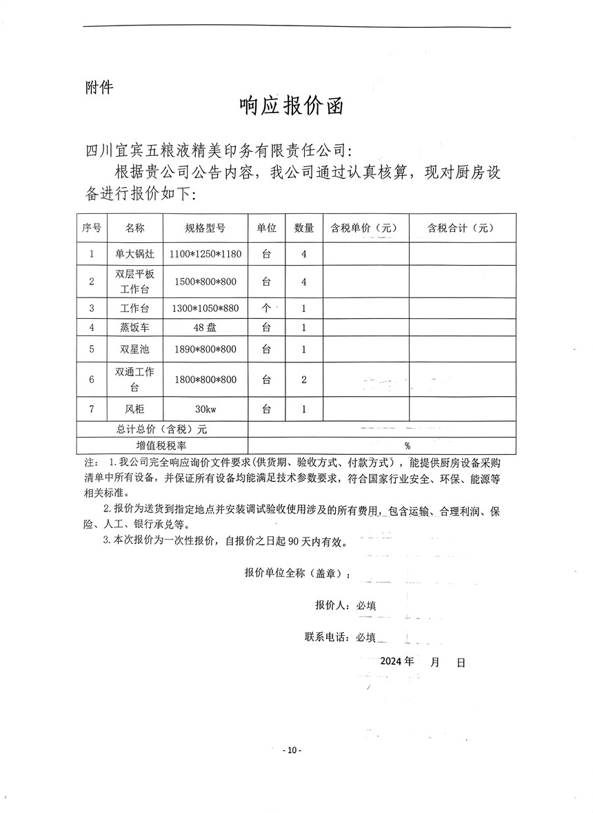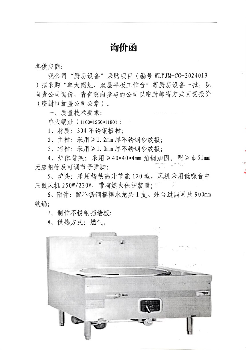 “厨房设备采购”项目询价采购公告