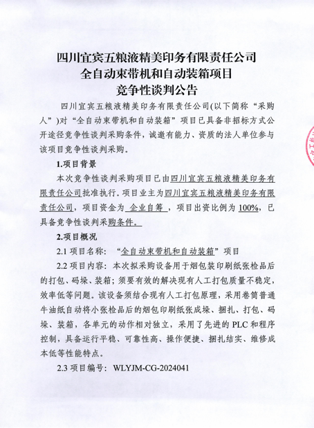 全自动束带机和自动装箱项目竞争性谈判公告