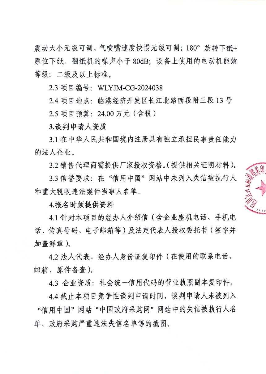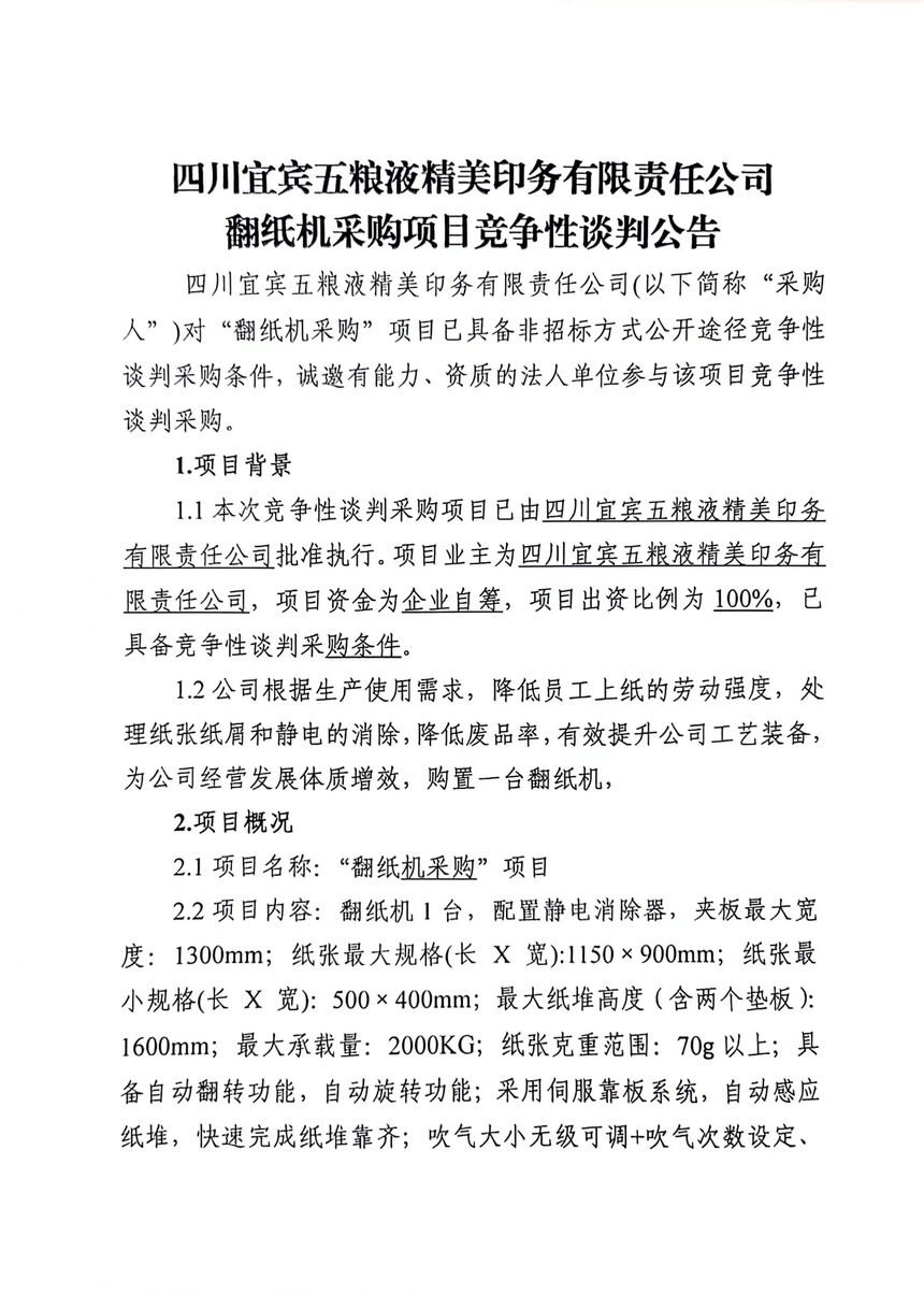 翻纸机采购项目竞争性谈判公告
