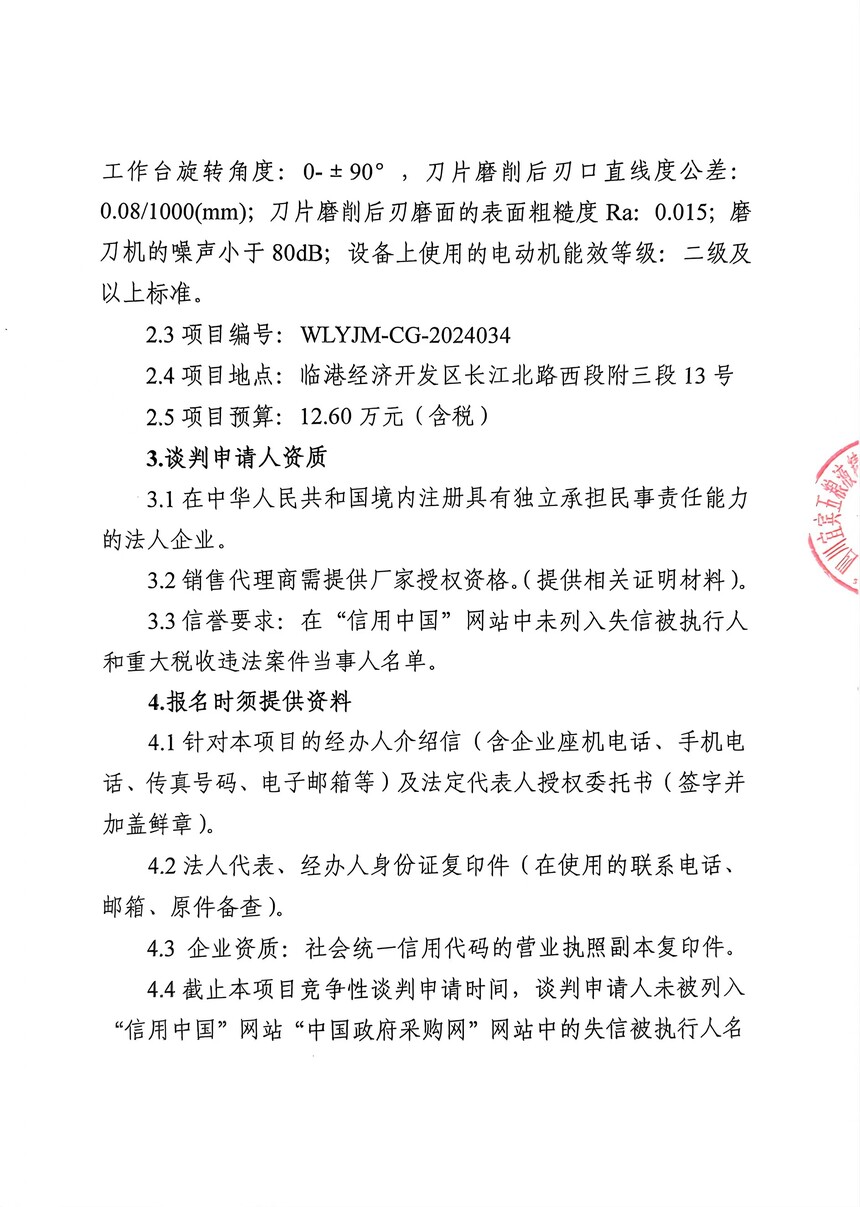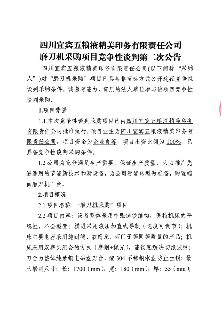 磨刀机采购项目竞争性谈判第二次公告