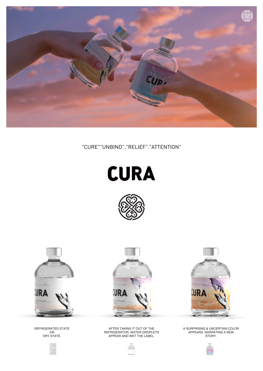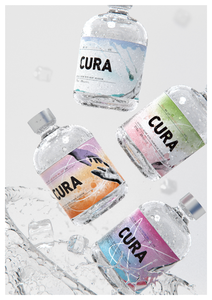 CURA项目旨在通过独特的视觉语言吸引年轻消费群体,初期定位为关注心理健康的特定人群,后经多轮探讨与优化,最终聚焦于利用创新工艺、创新材料,打造出在户外露营、亲友聚会、自饮小酌等场景中兼具互动性与美感的饮品体验。