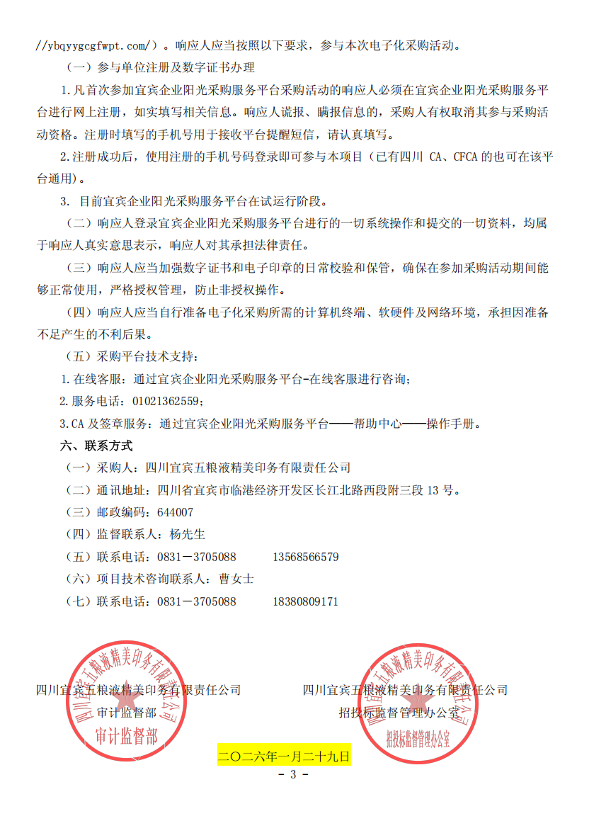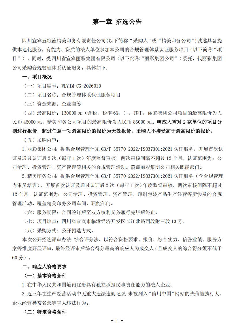 四川宜宾五粮液精美印务有限责任公司合规管理体系认证服务项目公开招选公告