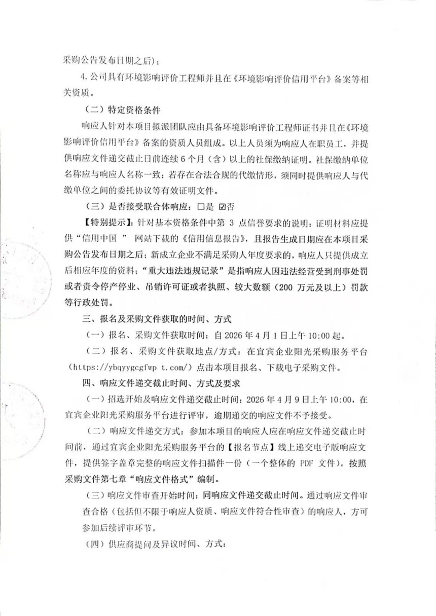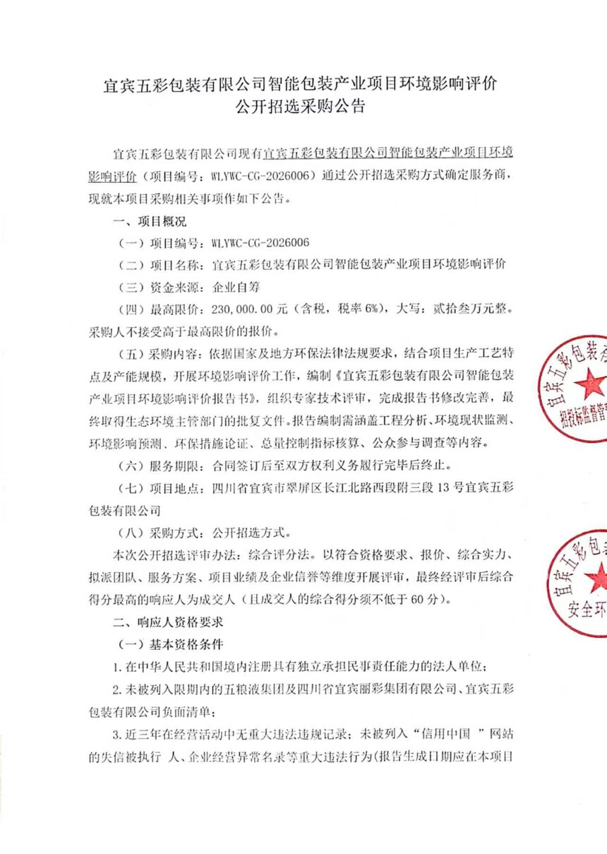 宜宾五彩包装有限公司智能包装产业项目环境影响评价 公开招选采购公告